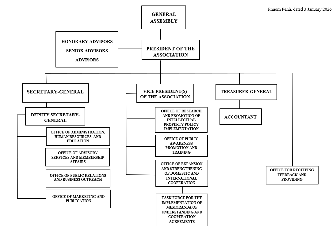 Organizational Structure of Promoting Intellectual Property Trading Association IP Relevant Links Ministry of Commerce Cambodia Trade Cambodia IP SETFO CO Automation E-Commerce Licensing Cambodia IP E-learning Global DB Search ASEAN IP Portal Madrid Goods & Services Manager